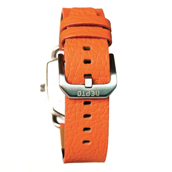NEPTO a associé la White Reverso à un bracelet de montre en cuir italien St Alce orange avec un démontage rapide. Un des grand classique de l’horlogerie. Ce bracelet flashy donne un style unique à votre garde-robe.