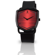 Mainly distinguished by its bright red colour and the alternation between black and red. Its finishing touch gives a matt and 3D impression and offers a very deep dial. Two central «dolphin» hands, with a Superluminova treatment allow you to see in both light and dark environments, nonchalantly cross this dial to serve you the hours and minutes. Chevrons mark the corners of the dial and give a modern and masculine touch to the whole.