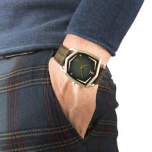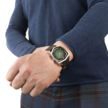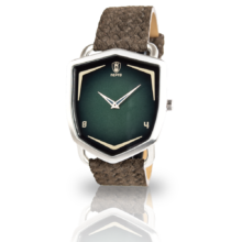 Symbolised by an original dark green hue and a black tint on the contours, the dial is enhanced by a finish that catches the light rays and makes the green of the dial vary in a multitude of different shades depending on the ambient light or the angle of the wrist. The hands are dressed in a khaki green that blends perfectly with the back of the dial. Thin chevrons outline the dial and its black contours and mark the distinctive shape of the case.